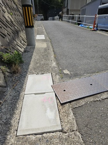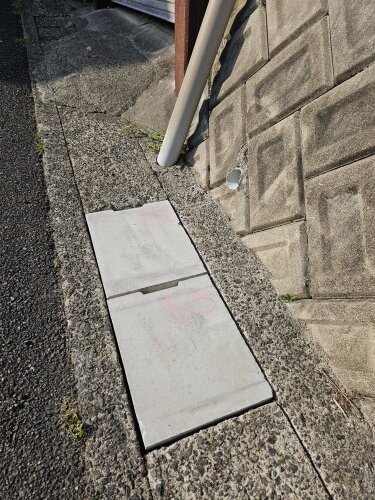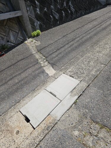 側溝のフタを受けるところが壊れていたので、補修し新しいフタを設置しました。