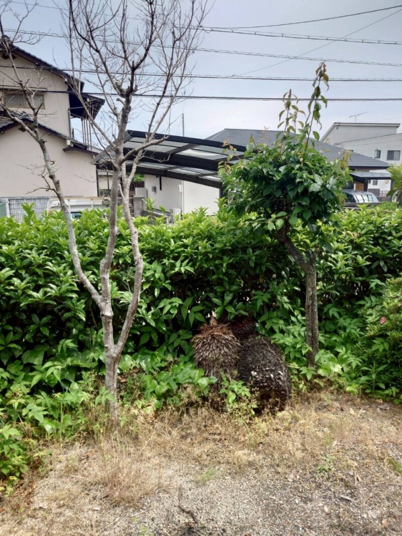 樹木を撤去し砕石を敷いたので、草むしりや庭木のお手入れが楽になりました!