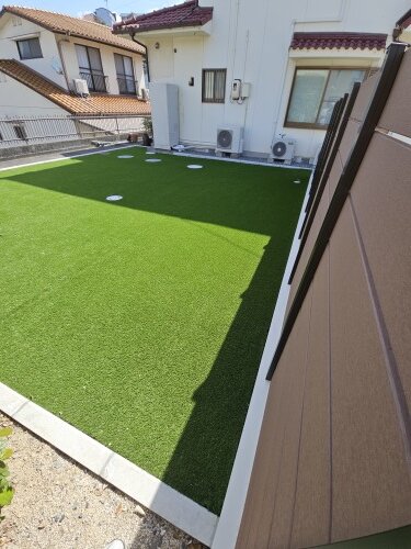 駐車場を拡げ、フェンス・人工芝を設置、水栓も新しくなりました。