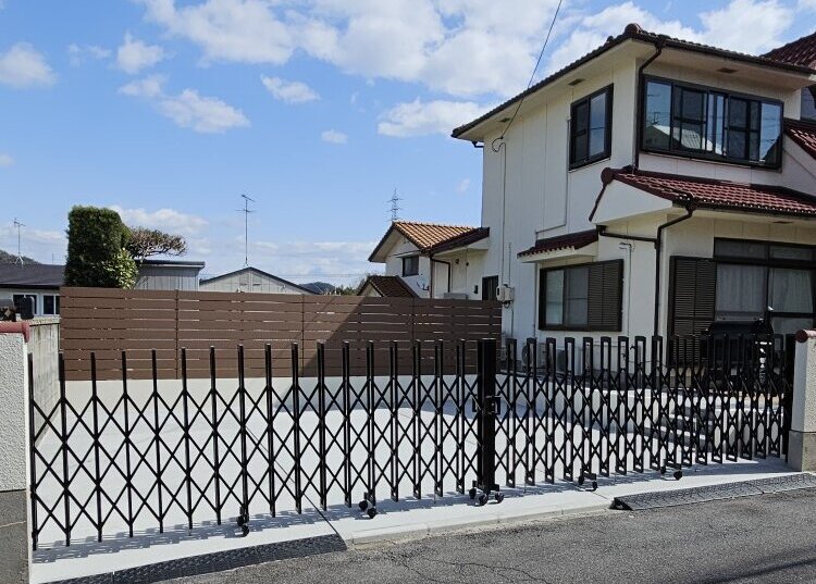 駐車場と奥の庭との境には、フェンスを設置しました。